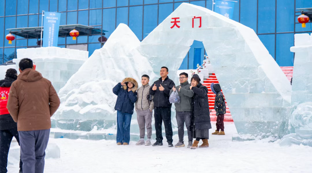 除了动感的冰雪运动,沉浸式景观与特色业态更让游客流连忘返。天门造型冰雕、长城意象冰雕、冰屋、玫瑰冰墙等景观群,将中华传统文化元素与克州特色完美融合,宛如梦幻冰雪童话世界。