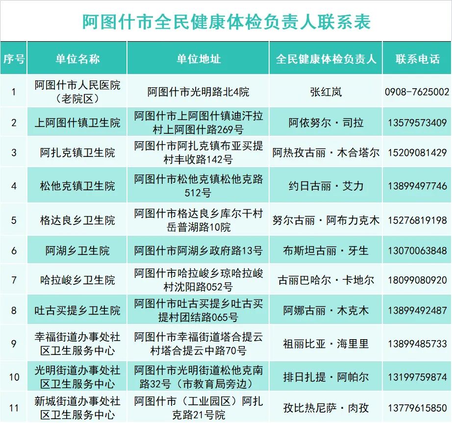阿图什市常住居民(居住6个月以上的流动人口)均可享受健康体检,体检将按照不同人群分类、分批次、分阶段有序开展。