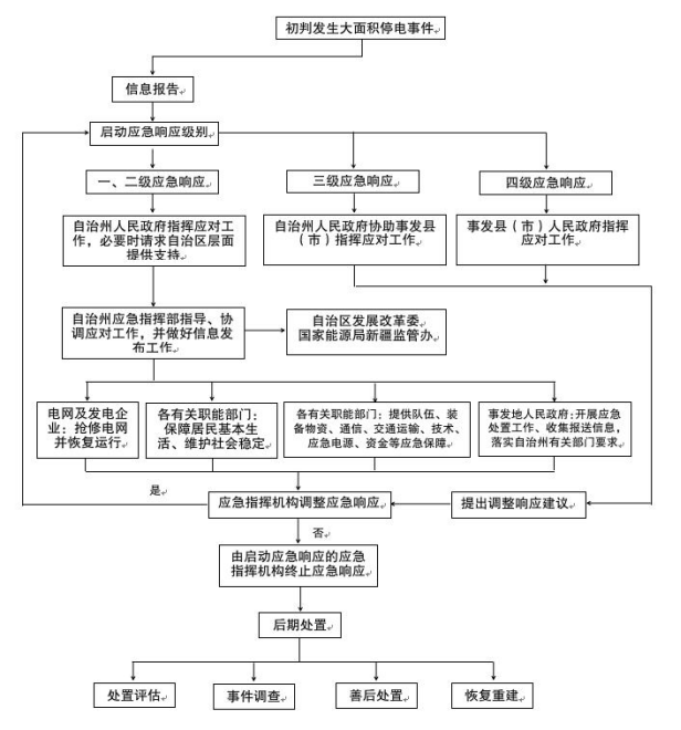 (1)负责自治州大面积停电事件应急处置的指挥协调,组织有关部门和单位进行会商、研判和综合评估,研究保证自治州电力系统安全稳定运行等重要事项,研究重大应急决策,部署应对工作;