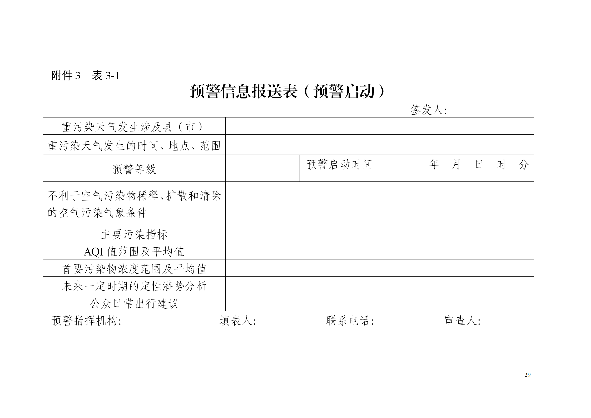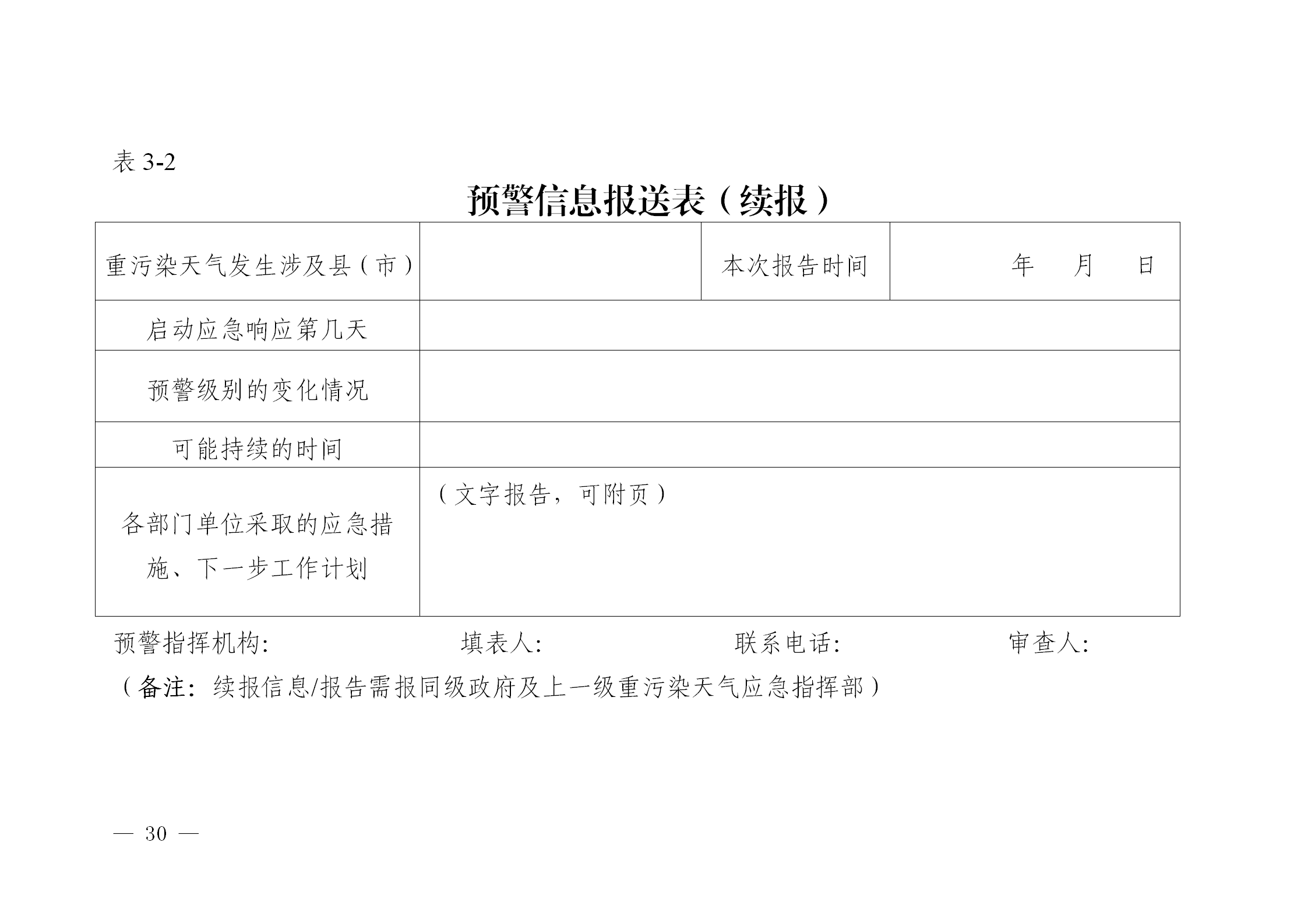 重污染天气预警涉及的县(市)人民政府应及时通过报纸、广播、电视、网络和新媒体平台及手机短信,向社会公众发布重污染天气的应急响应有关信息,包括首要污染物、污染的范围、可能持续的时间、潜在的危险程度、可能受影响的区域及需采取的措施建议等,方便公众及时了解预警情况,加强自身健康防护。预警信息应持续滚动播报。