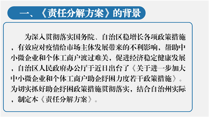 图解:《自治州贯彻落实〈关于进一步加大中小微企业和个体工商户助企纾困力度若干政策措施〉责任分解方案》政策解读
