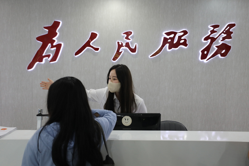 5月30日,在滁州市十大正规赌钱官方首页中心,工作人员为市民办理业务。