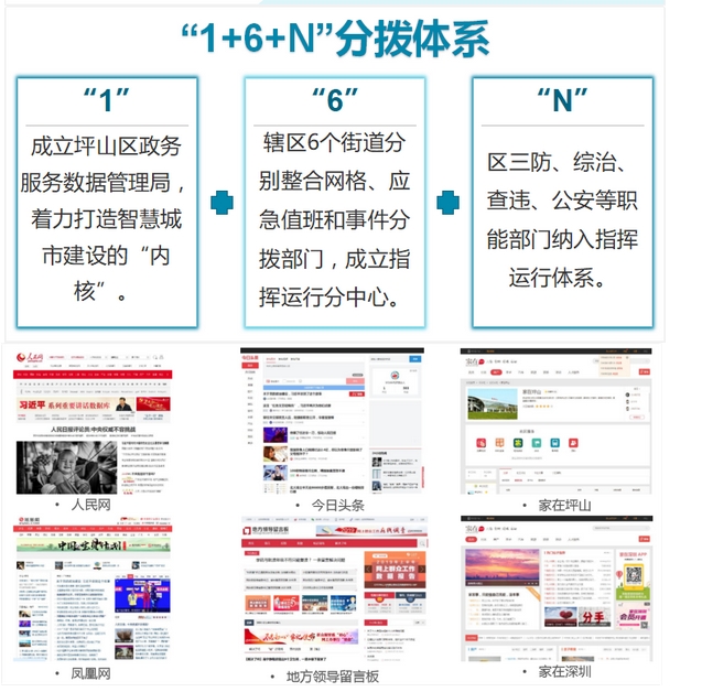 2016年以来,坪山区在全市率先启动民生诉求受理体制机制改革,通过关停、合并、共用接口等方式,整合了全区150个民生诉求受理渠道,5个分拨平台,建成了全区统一的汇聚“集中受理、统一分拨、全程监督、闭环运转”为一体的民生诉求分拨系统,构建了“1+6+N”分拨体系,实现了“一个系统分事件,一套标准抓落实、一张表单统情况”。