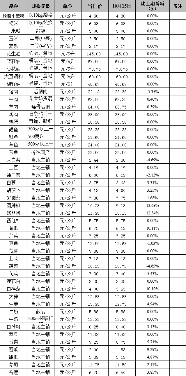 克州肉、禽、菜、水产品价格应急检测表10.22 (公示)