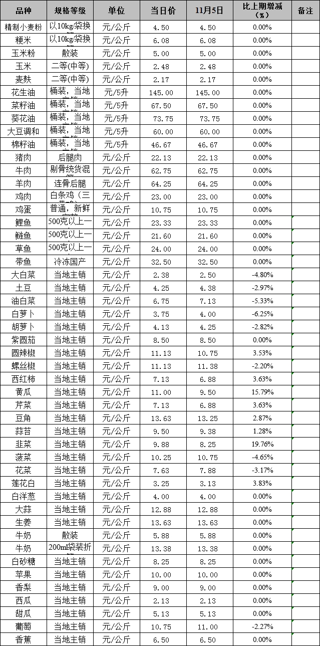 克州肉、禽、菜、水产品价格应急检测表11.12 (公示)