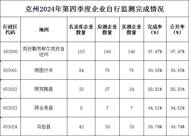 克州2025年第四季度企业自行监测完成情况 |