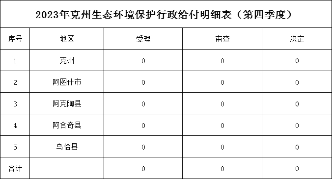 2023年克州生态环境保护行政给付明细表(第四季度)