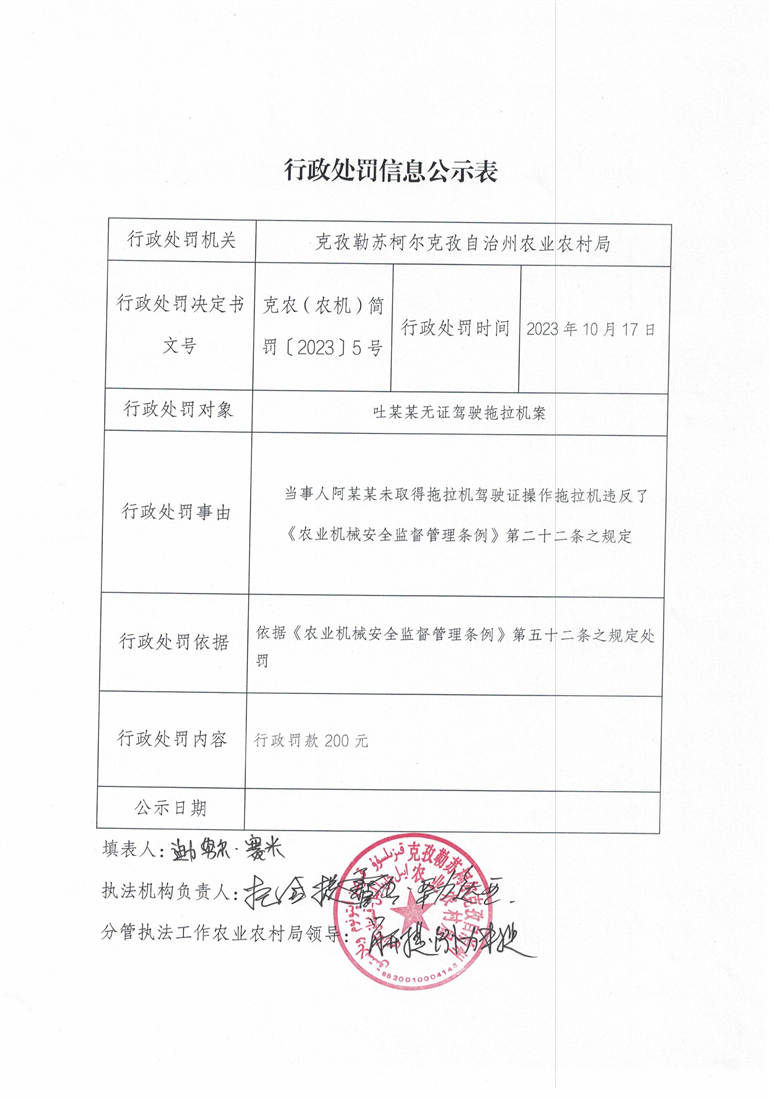 首页 > 信息公开 > 克州农业农村局 > 行政处罚信息