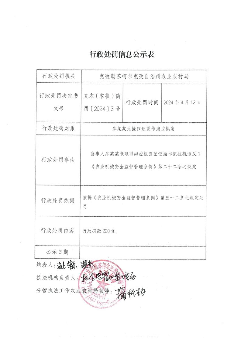 首页 > 信息公开 > 克州农业农村局 > 行政处罚信息