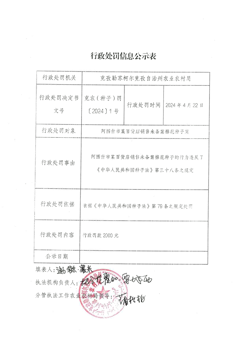 首页 > 信息公开 > 克州农业农村局 > 行政处罚信息