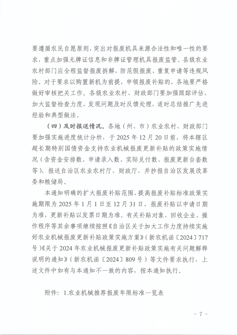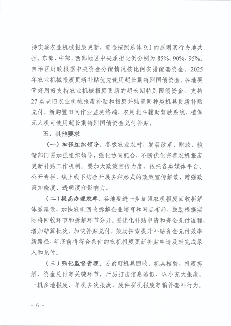关于加力扩围实施好2025年农业机械化报废更新补贴政策的通知