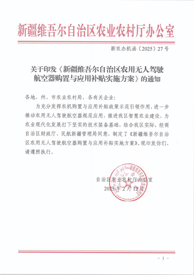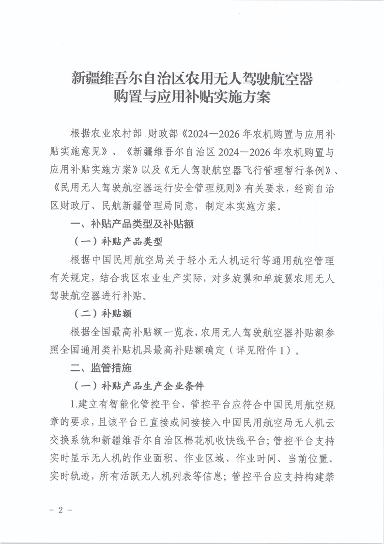 关于印发《新疆维吾尔十大正规赌钱官方首页农用无人机驾驶航空器购置与应用补贴实施方案》的通知