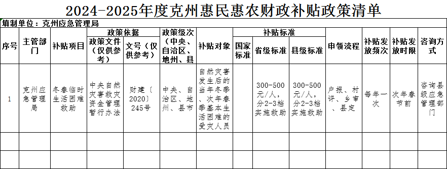 2024-2025年度克州惠民惠农财政补贴政策清单