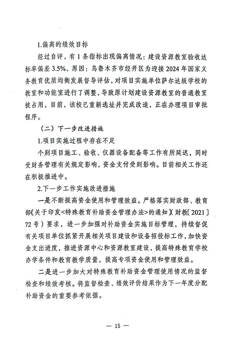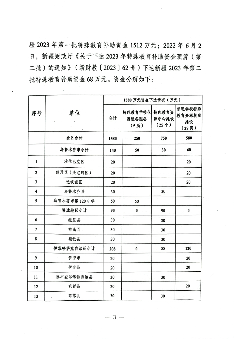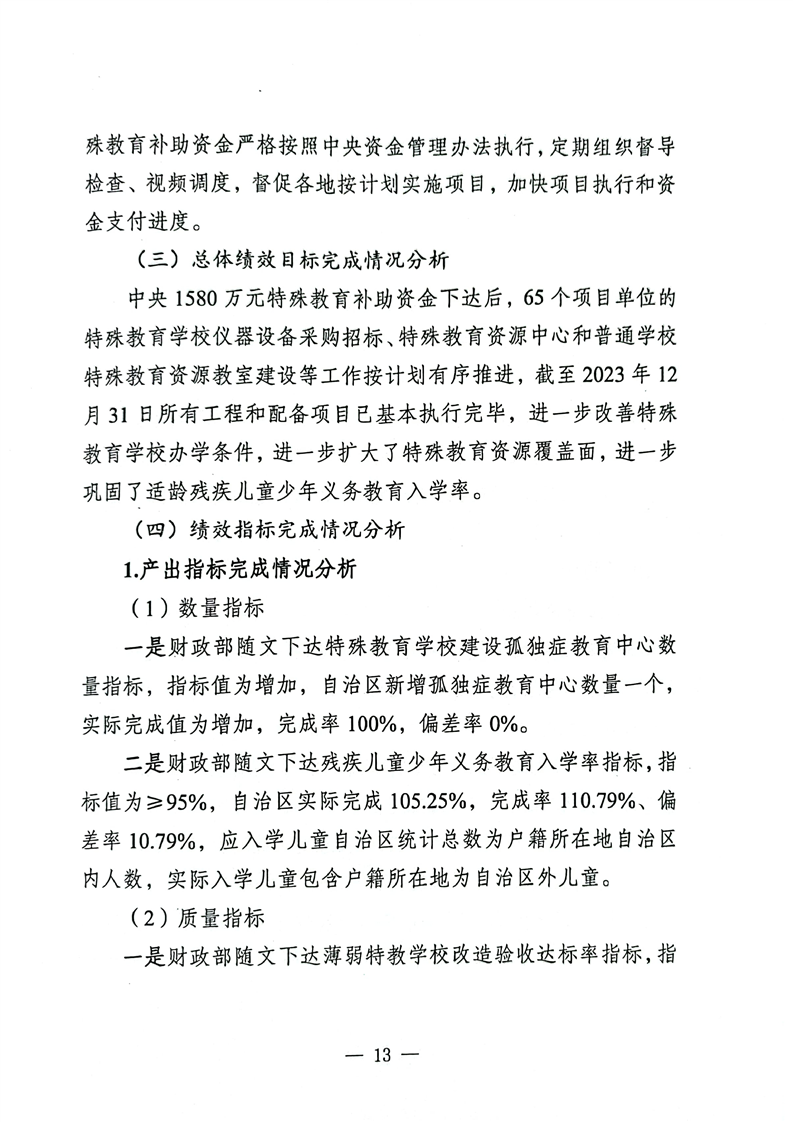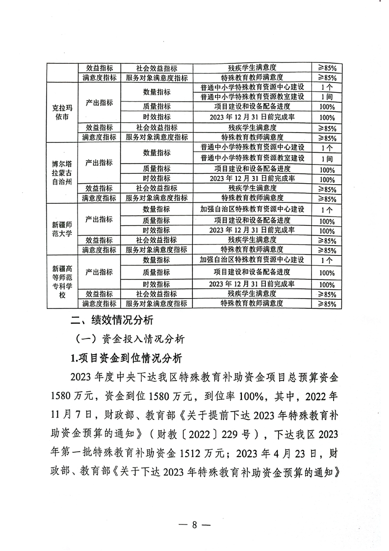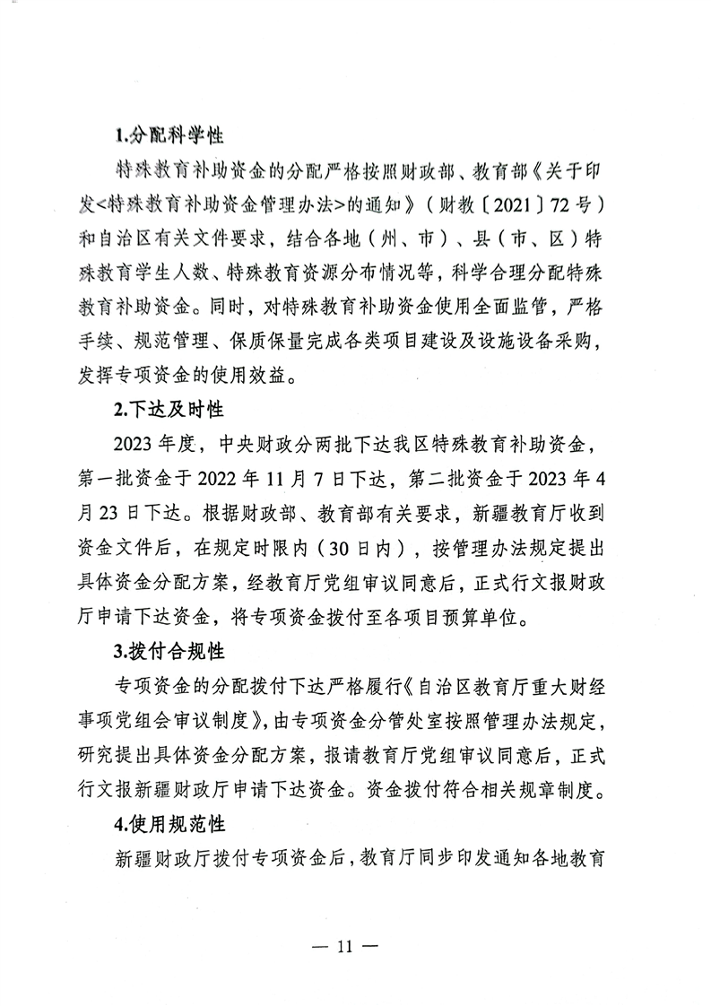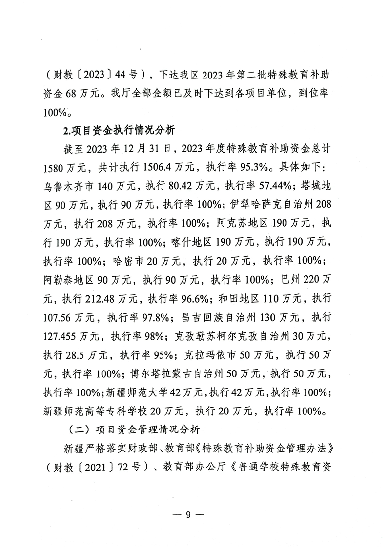 关于报送《新疆维吾尔十大正规赌官方网站特殊教育补助资金转移支付2023年度绩效自评报告》的函