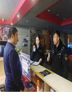 各县市文化市场综合执法队先后对辖区内网吧、娱乐场所、书店等经营场所进行全面重点检查:是否存在未成年人进入、是否超时经营、是否制定和落实消防安全规章制度;应急照明灯、火灾报警和灭火系统等消防设施是否完善,安全疏散通道和安全出口是否畅通,应急预案、疏散标志是否明显,电源线路是否存在安全隐患,营业期间禁止封堵或锁闭门窗,是否存在“黄、赌、毒”违法违规现象以及消防制度是否健全、落到实处,员工对灭火设备的了解和使用及四个能力掌握情况进行了详细检查。检查中发现,3家网吧存在安全隐患(2家网吧应急预案和应急演练不完善,1家网吧安全出口指示灯已损坏),执法人员责令经营业主限期整改。并督促所有经营业主做好元旦节期间各项安全生产工作,确保“安全生产”和“未成年人”两条红线不出问题。
