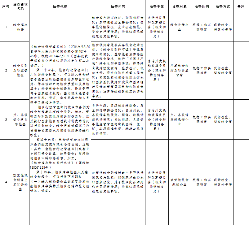 自治州发展改革委(粮食和物资储备局)双随机、一公开抽查事项清单