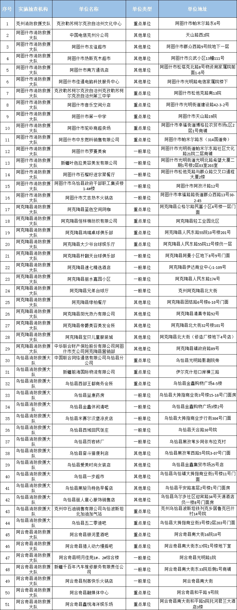 克州辖区2022年5月“双随机、一公开”消防监督抽查计划