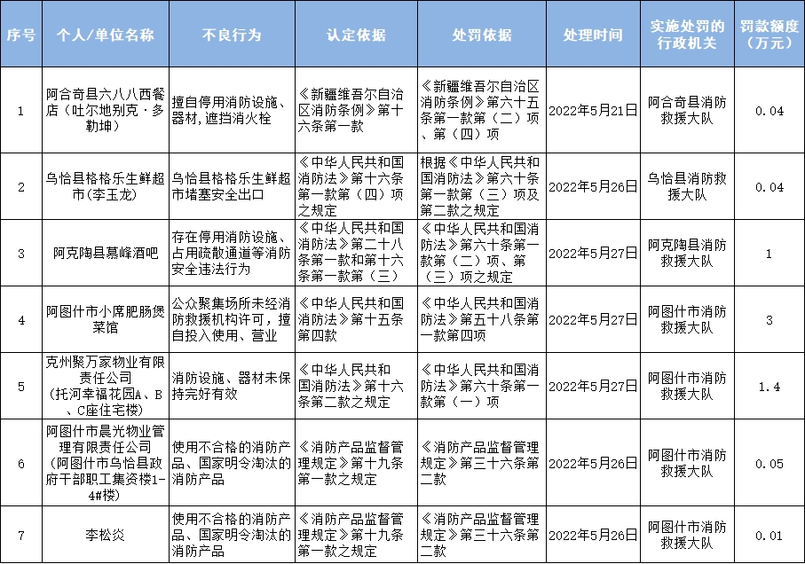 克州辖区2022年5月消防安全不良行为公示 |