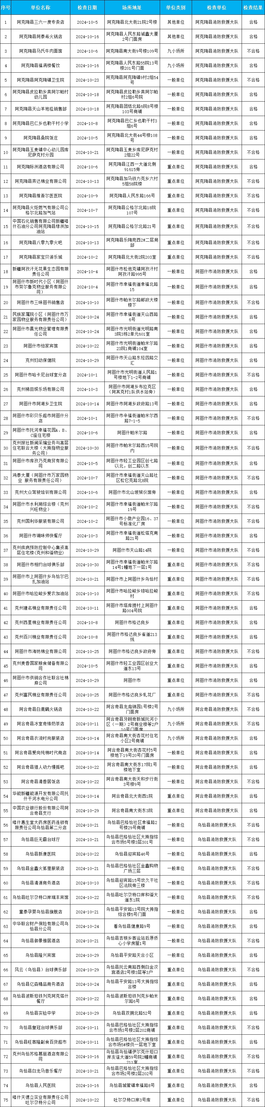 克州辖区2024年10月“双随机、一公开”消防监督抽查结果公示