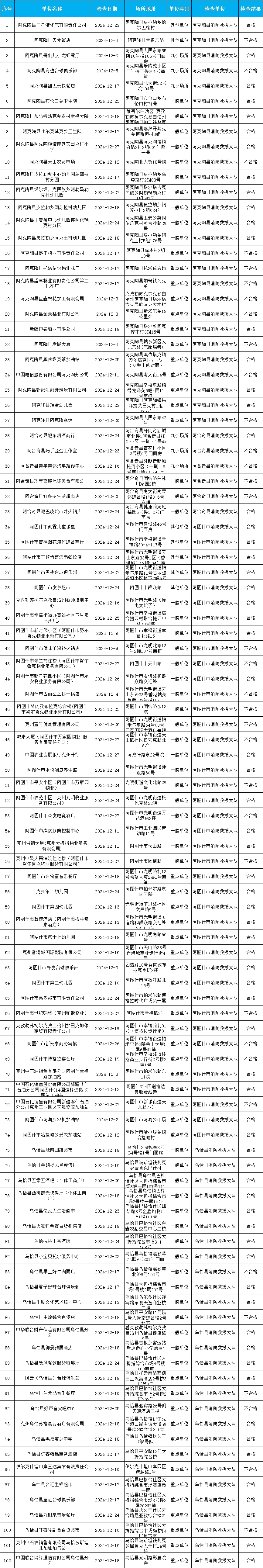 克州辖区2024年12月“双随机、一公开”消防监督抽查结果公示