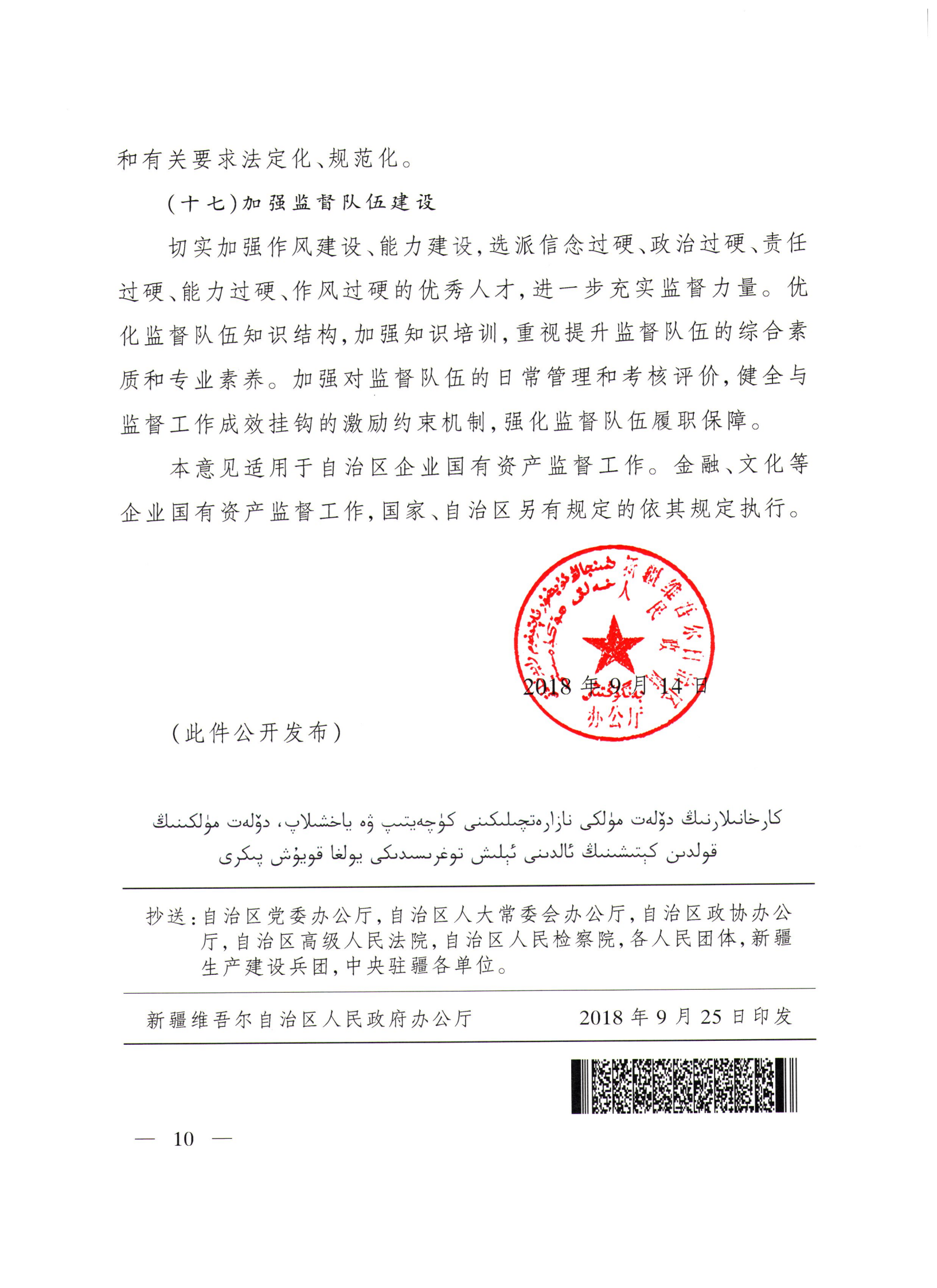 现将十大正规赌官方网站人民政府办公厅《关于加强和改进企业国有资产监督防止国有资产流失的实施意见》(新政办发〔2018〕100号)转发你们,请抓好贯彻落实工作。