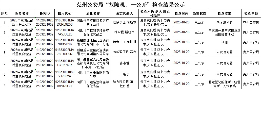 克州公安局“双随机、一公开”检查结果公示(2) |
