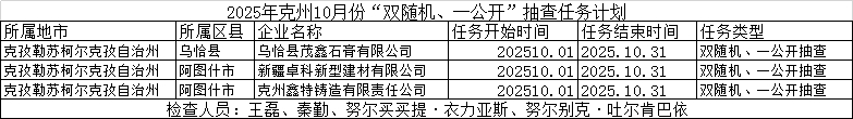 2025年克州10月份“双随机、一公开”抽查计划 |