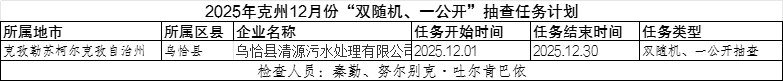 2025年克州12月份“双随机、一公开”抽查计划