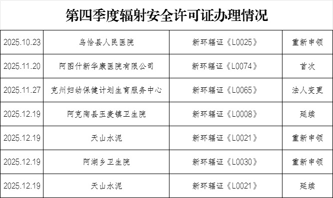 2025年辐射安全许可证办理情况结果公示(第四季度)
