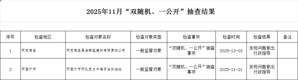 2025年克州11月份“双随机、一公开”抽查结果 |
