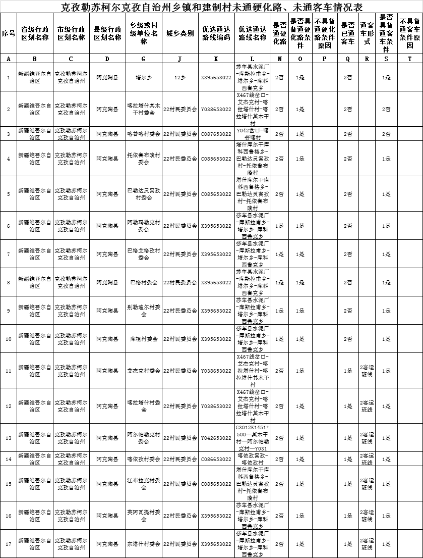 经报请十大正规赌官方网站同意,按照《交通运输部办公厅关于加快核实乡镇和建制村通硬化路通客车基础数据的通知》(交办规划函〔2019〕510号)及《关于加快核实乡镇和建制村通硬化路通客车基础数据的通知》(新交函〔2019〕348号)有关要求,现对我州“两通”基础数据公示如下: