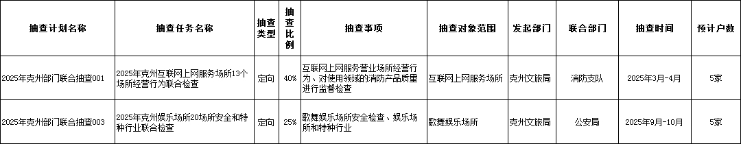 克州文化体育广播电视和旅游局文化市场领域2025年部门联合双随机工作计划
