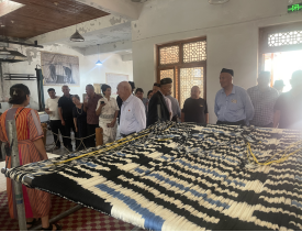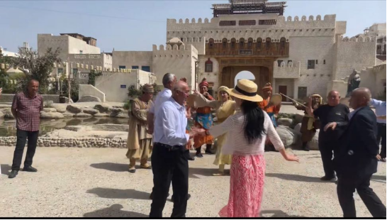 活动中,走进和田越特干古城,感受深厚的历史文化底蕴与现代艺术的交融之美,再现西域古国的风貌;走进艾特莱斯工坊,军休干部们触摸文化印记,体验非物质文化遗产的魅力;走进麦盖提刀郎画廊,观看非物质文化遗产木卡姆演出,并现场学习刀郎木卡姆演奏以及麦西热甫唱跳。随后跟着讲解员的脚步,依次进入展览馆参观,深入了解刀郎文化的底蕴。