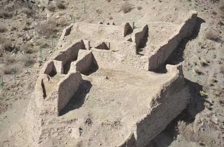 铁列克卡伦遗址位于铁列克乡克特喀拉村,卡伦依山而建,房屋大多数呈长方形,除F3坐东向西外,其余房屋方向均不正。房屋由砾石石块砌成,之间以黄泥粘合。房屋顶部现均已坍塌,仅余残墙,残墙高约1~1.6米,宽约0.5米。地表散落有从房屋上坍塌下的石块,未见其他遗物。该卡伦遗址所在地为古代通往铁列克乡的必经之路,地理位置险要,对研究清代该地的军事、交通状况有重要意义。