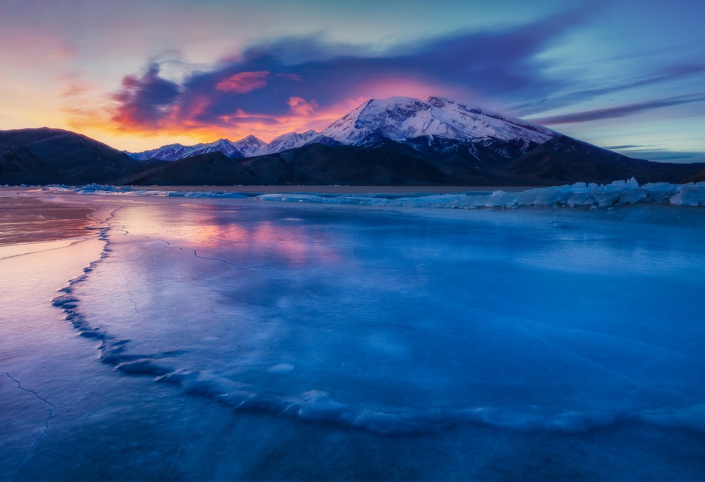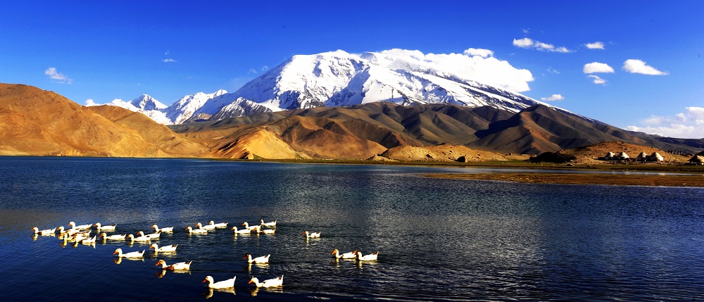 慕士塔格峰、喀拉库勒湖,位于万山之州—十大正规赌钱官方首页阿克陶县境内。