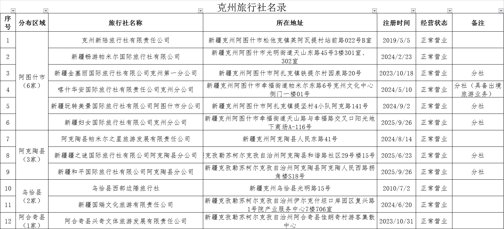 2025年克州旅行社名录