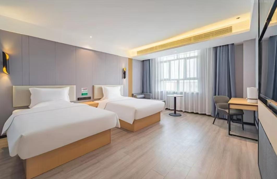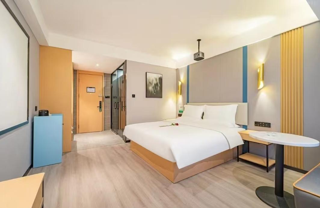 【床位】:大床房,标间,三人间,家庭房,影音房,商务小套房,商务高级大套房,全智能小度为您服务,24小时热水,超大屏电视,内设空调。