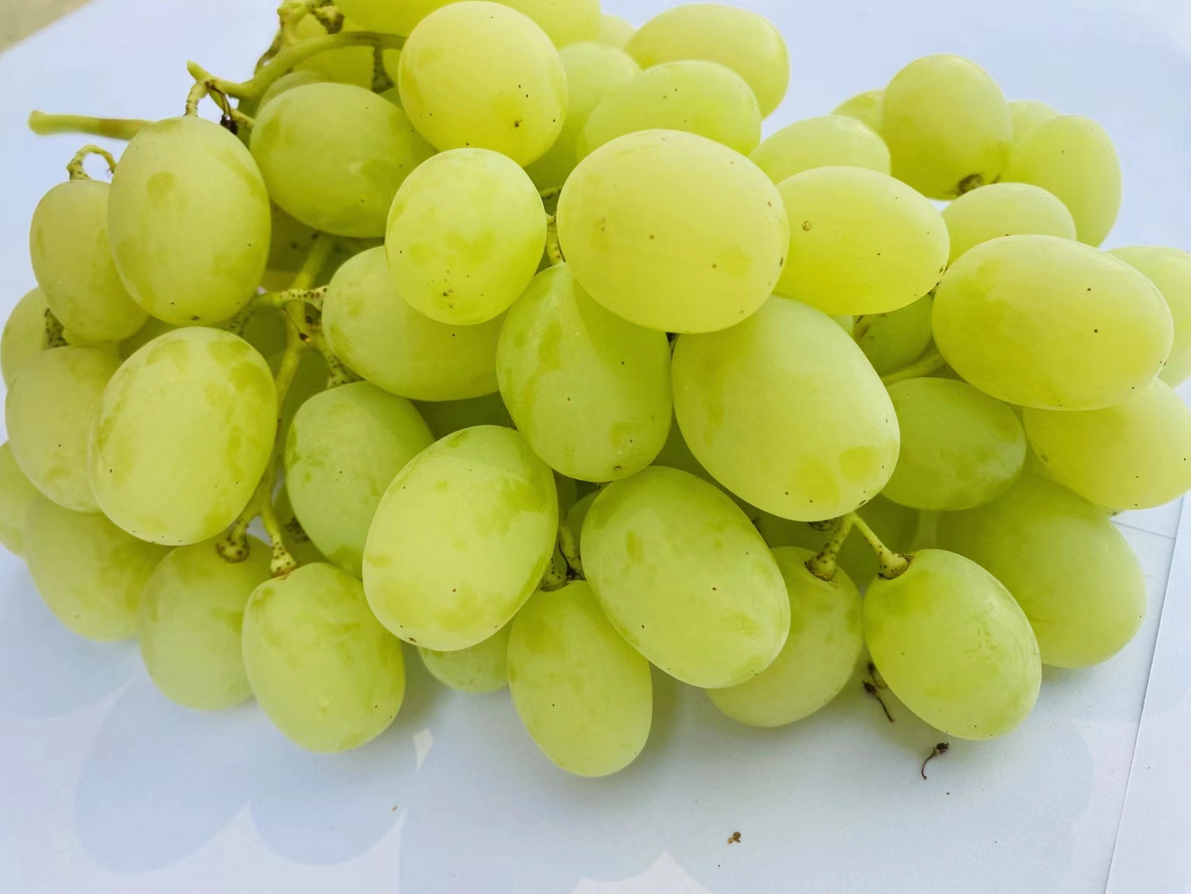 木纳格(维吾尔语,意为“晶莹剔透”)葡萄,来自古波斯品种,独有小产区栽培,粒大、皮薄、色泽鲜艳、口味甘美、生长在无污染的绿色环境中,富含黎芦醇化合物和晒元素,具有较强的防癌抗癌功效,是最具新疆特色的鲜食。