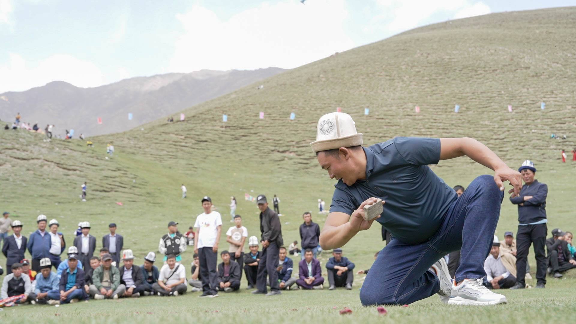 柯尔克孜族喜爱的一种传统体育竞技活动。它不受季节的限制,特受柯尔克孜族喜爱。柯尔克孜族英雄史诗《玛纳斯》中这样记载着此项互动:以绳子为标准,在地上划上个圆圆的圈子,将游戏的人们分离。双方约好先将中心的“皇上”标明,再把奖品商定。奖品里面藏着个“皇上”,双方就可以比个输赢。双方你争我夺要把髀石打飞,谁家撵走“皇上”,这些奖品就归谁。