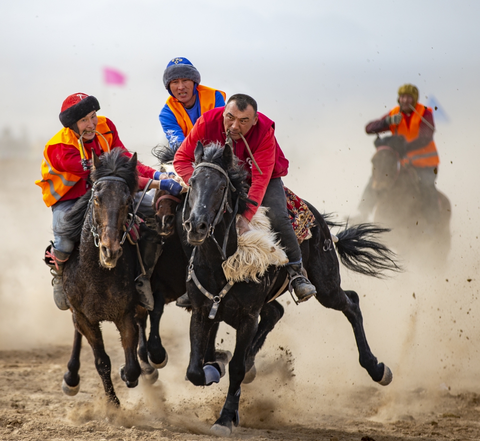 柯尔克孜族民间体育竞技娱乐活动 (组照之一,马上角力) 包迪 摄