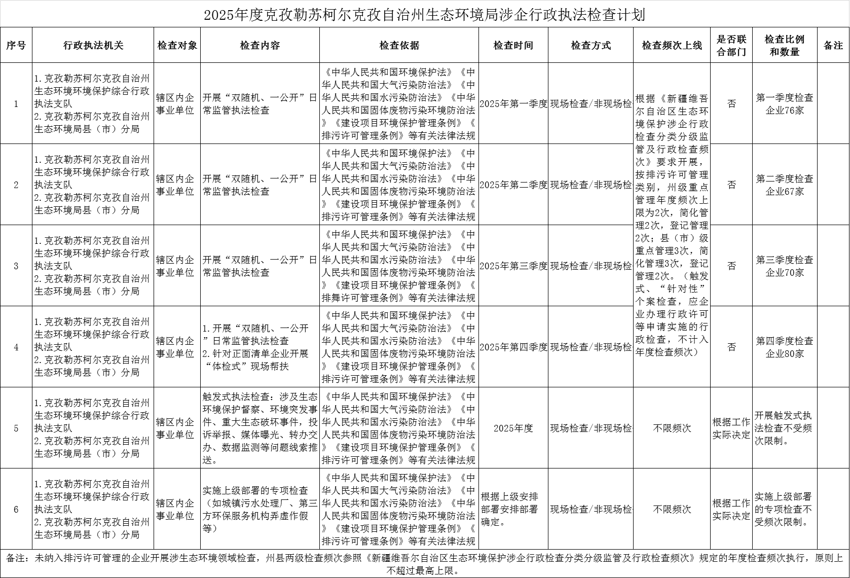 2025年度十大正规赌钱官方首页生态环境局涉企行政执法检查计划